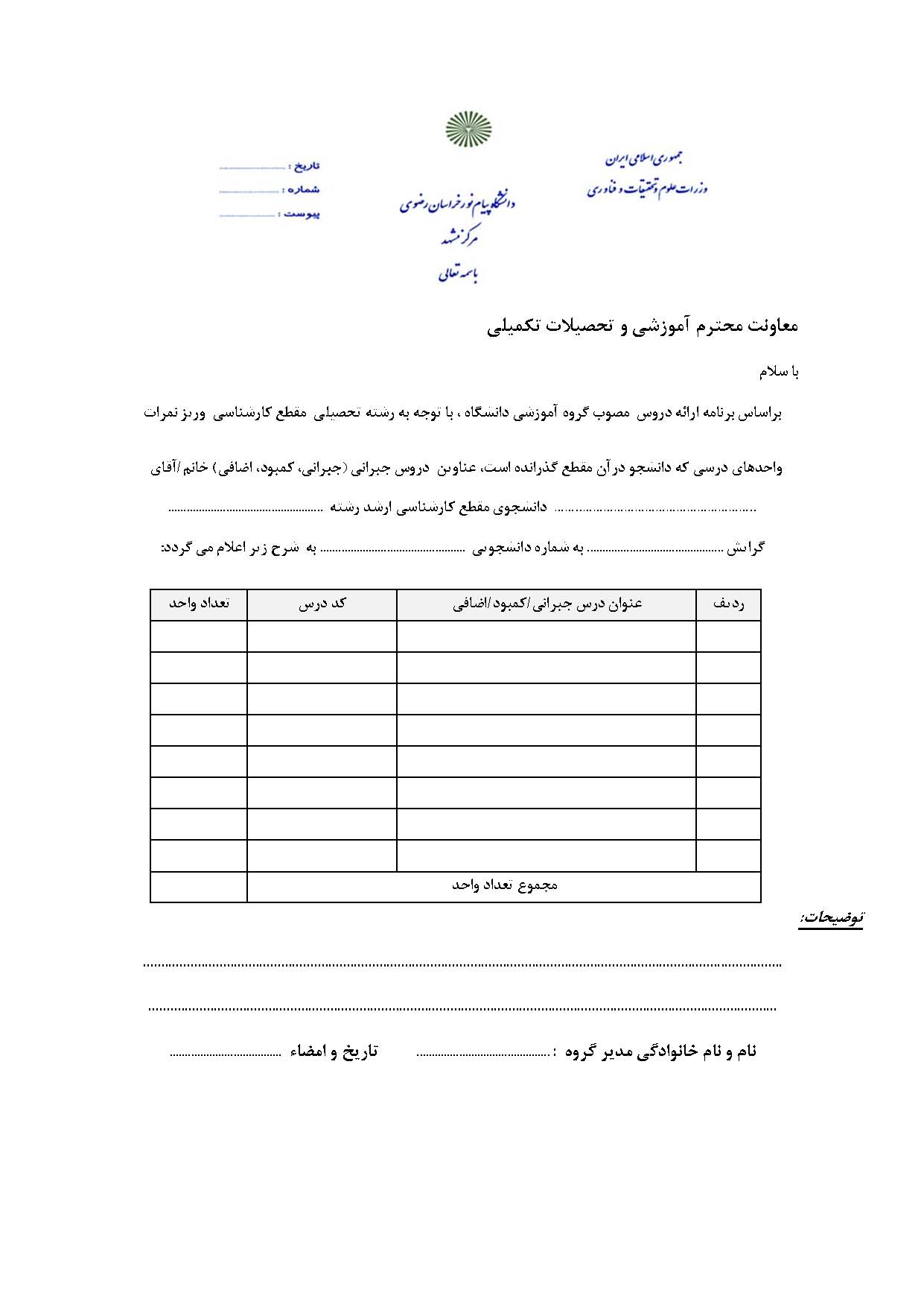 15- فرم ارزشيابي (کاربرگ شماره 3) و صورتجلسه دفاع