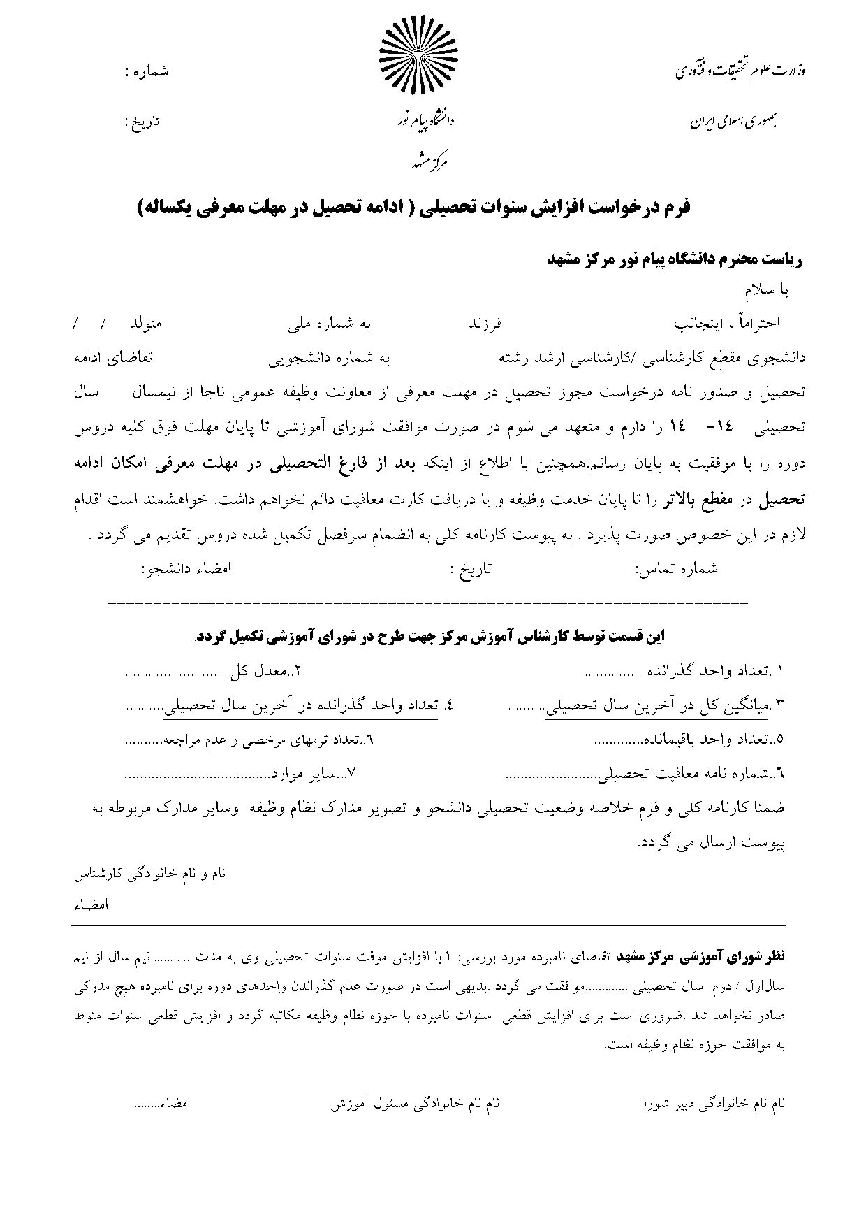 فرم درخواست افزایش سنوات تحصیلی (فرجه معرفی یکساله)